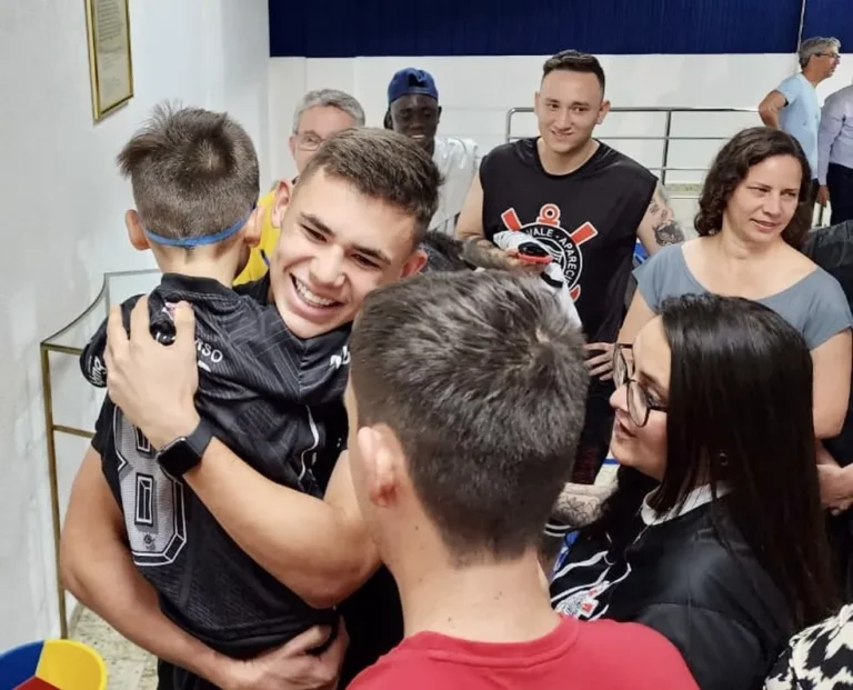 Gabriel Moscardo viveu uma noite diferente nesta terça-feira. O volante do Corinthians voltou a Taubaté, no interior de São Paulo, e recebeu uma homenagem na