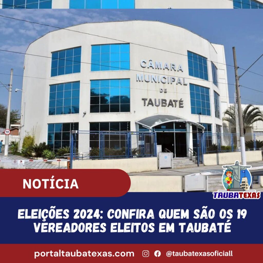 Os 19 vereadores eleitos para a Câmara Municipal de Taubaté foram oficialmente anunciados na noite deste domingo após a apuração do 1° turno das eleições municipais pelo Tribunal Superior Eleitoral (TSE). Confira a lista dos eleitos, organizada por número de votos: