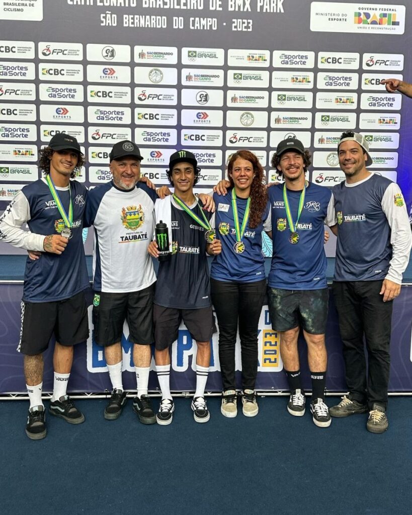 No último fim de semana, 16 e 17, os atletas do BMX Taubaté fecharam o pódio no Campeonato Brasileiro de BMX Park, além da conquista do bronze no feminino. Gustavo “Bala Loka” garantiu o primeiro lugar na categoria elite masculino, seguido de Felipe Manerim e Cauã Madona; Derlayne Roque ficou com o bronze na elite feminino.
