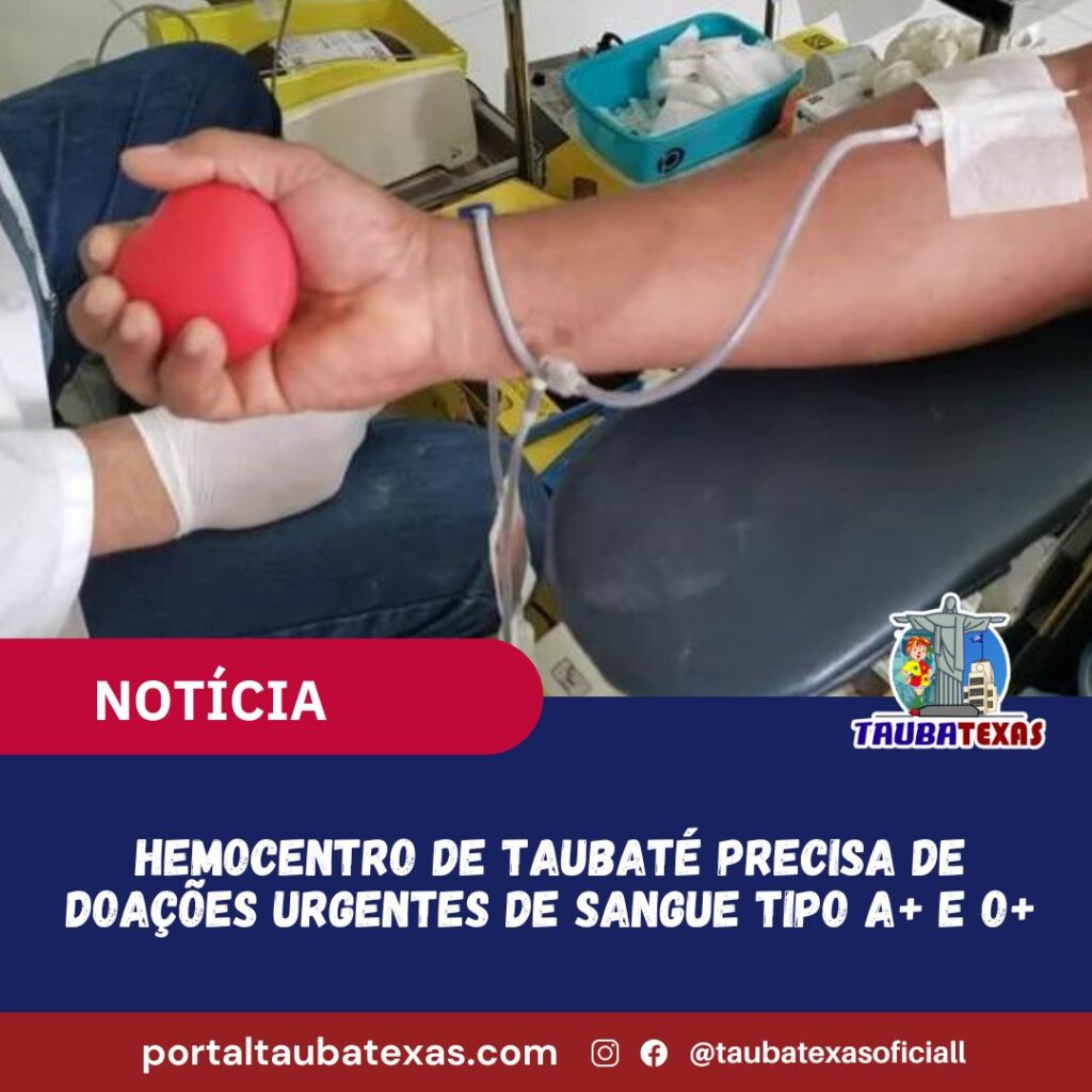 O Hemocentro de Taubaté enfrenta uma situação crítica de estoque, com falta dos tipos sanguíneos A+ e O+, essenciais para atender às necessidades dos hospitais e pacientes locais.