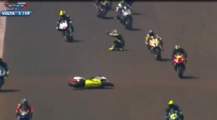 Um acidente impressionante marcou a quarta etapa do Campeonato Brasileiro de Motovelocidade, em Cascavel, neste domingo.