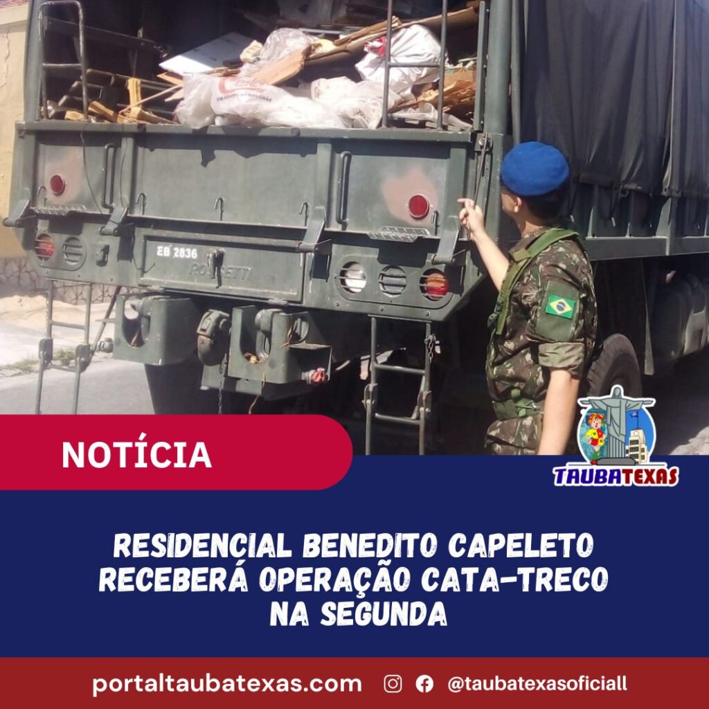 A operação Cata-treco conta com o apoio do Cavex, que disponibiliza 40 militares e caminhões para auxiliar nas atividades de coleta. Além disso, equipes da Prefeitura estarão presentes para garantir a abrangência da operação, que passará por todas as ruas do Residencial Benedito Capeleto.